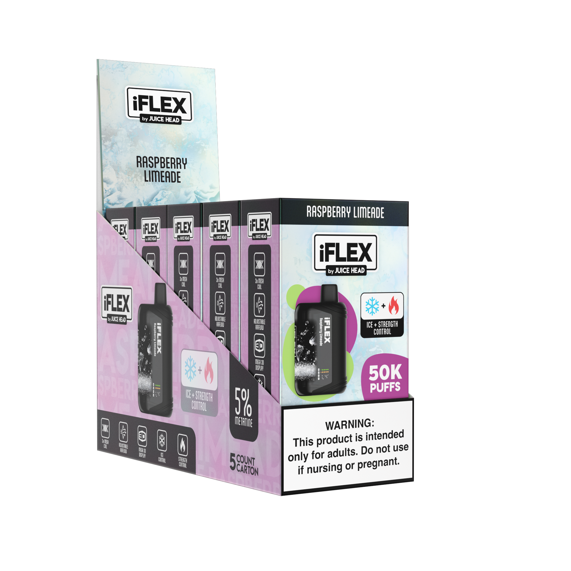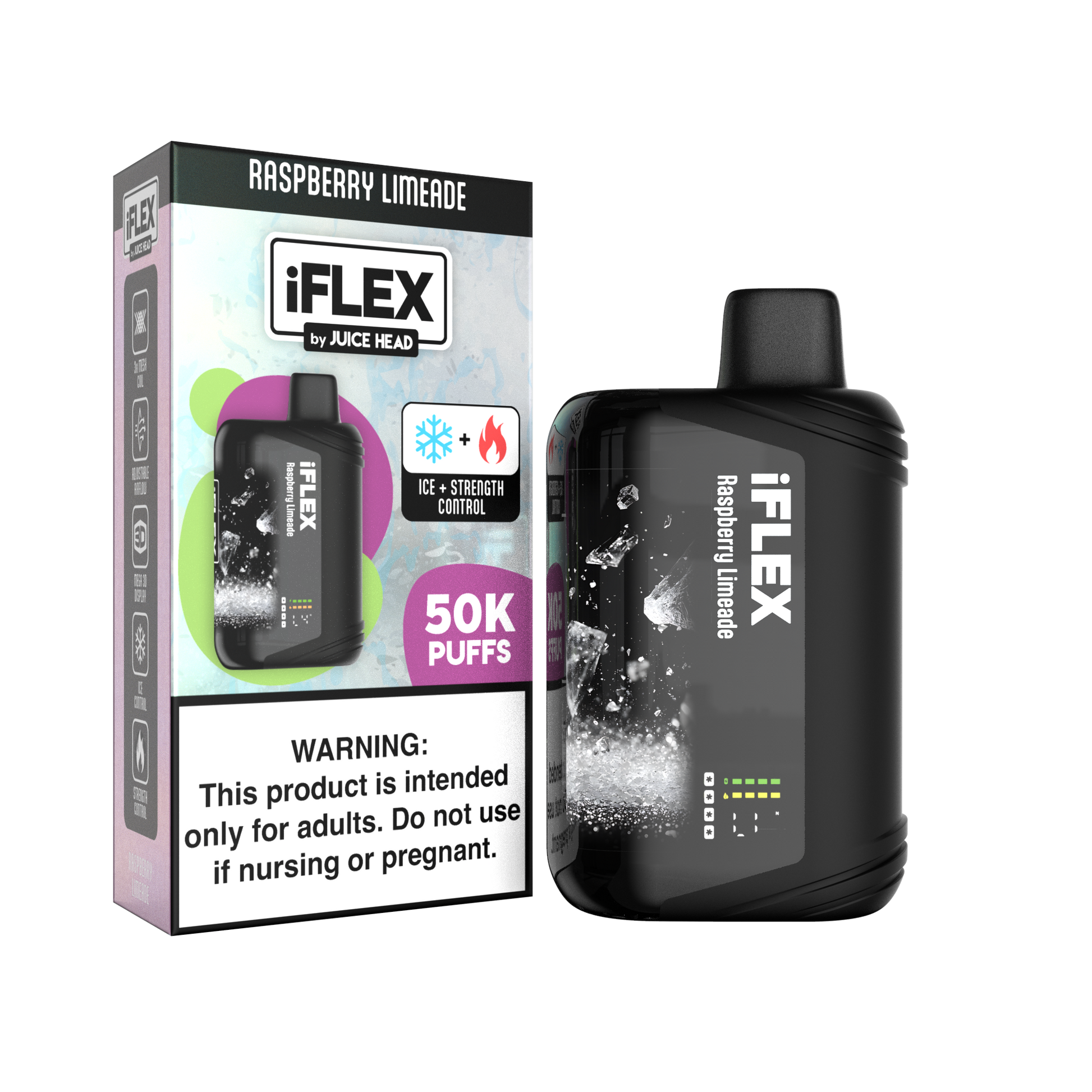 The iFLEX by Juice Head Raspberry Limeade delivers a bright blend of sweet raspberry and tangy lime with customizable ice and strength control. With up to 50,000 puffs and a sleek, long-lasting device, it offers a consistently refreshing and premium vape experience.